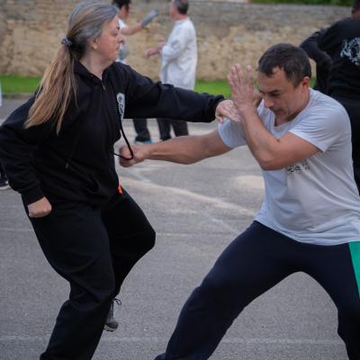 Travailler à deux ou plus, permet d'acquérir la dextérité nécessaire à entraîner et utiliser les techniques et mouvements appris. Le but, en dehors de l'efficacité recherchée, est que les défenses soient le plus naturelles et fluides possible.
