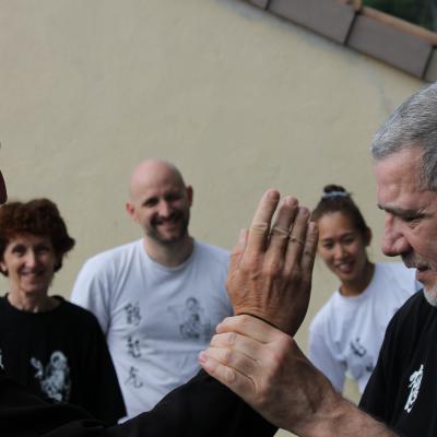 Pour finir... Le public profane s'imagine que les mouvements, la respiration, les techniques sont "exceptionnelles et compliquées", c'est faux. "S'attendant à trouver du compliqué, les nouveaux arrivants trouvent des complications" qui sont souvent les seuls freins à la dextérité. Ex : Parer un coup ou une technique adverse qui sont des mouvements sous diverses formes puisque les situations, nos positions et déplacements dans l'espace sont diverses, eh bien vous le faites pourtant tous les jours,... en prenant , attrapant par exemple divers objets à divers moments dans divers endroits, he oui le secret de la bonne parade est dans les trois "divers". Je vais donc me faire huer mais, vous tous savez déjà parer. Si quelqu'un de votre entourage s'approche et fait un geste subitement prés de votre visage vous allez parer sans même réfléchir... c'est ça, c'est ce que l'on recherche une forme de spontanéité avec une capacité de détente et de contractions à l'instant T. La spontanéité (bis) naît souvent de l'habitude "non-réfléchie", vous marchez... vous souvenez-vous quand et comment vous avez su marcher ? Non ! C'est exactement ce que je disais plus haut, vous ne faites pas... vous êtes le mouvement, l'entraînement est là pour guider et parfaire dans le bon sens En chinois "Ji Ben Gong" l'entraînement aux fondamentaux.